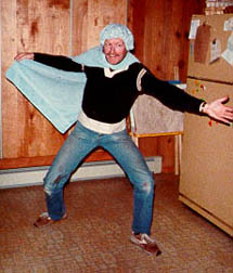 | Here are Gary and Lassen posing for the "how much for that sack of potatoes" joke. They are supposed to in the grocery store instead of the kitchen. I had to pretend that part. | |