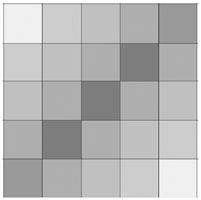 | Some possible ways are: Random: Dark or light center: Dark and light corners: ![]() ![]() ![]() Light and dark on the diagonal: Dark or light center diagonal: Dark cross or light cross: ![]() ![]() ![]() Dark to light stripes: Examples using color change rather than value: ![]() ![]() ![]() |