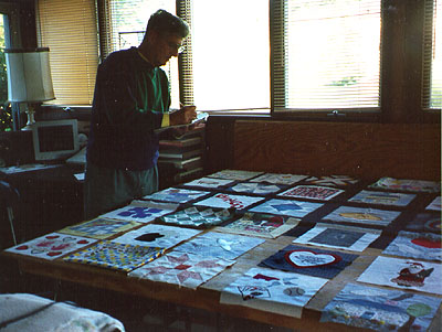 By May I had twenty-five finished squares and an offer from Aunt Fran to help put the quilt together after her retirement in August. I had started another square myself and knew of fifteen that people were still working on or planning. I sent out a letter to extend the deadline to the end of August. I heard that Sue had started her squares which was a good sign. Helen May called to say since there was time she had another quilter who would like to participate, Jackie Cooksey.