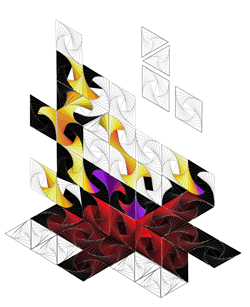 I liked the elf-like swirls, but they didn't really look anything like a fire in a fireplace. And they would be impossible to sew. Maybe if I worked larger with fewer hexagons...