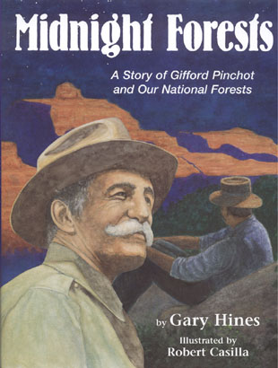 ![]() Now Available! A Junior Library Guild Selection About the story... Few have heard of Gifford Pinchot. Yet, he's probably one of the more important "forgotten" people America has ever produced. When I worked as a forest ranger, I knew only that Pinchot had once been the first "Chief" of the U.S. Forest Service. Then, in 1987, after deciding to develop a program to explain something about the history of the Forest Service, I started reading about him. What an interesting, talented, complex, well connected, controversial man he turned out to be! Perfect for a story. As America's first trained forester and a prominent advocate of conservation, he and his good friend, President Theodore Roosevelt, set aside millions of acres of land for wise forest management and use, rescuing them from unscrupulous robber barons and land speculators. Pinchot's views were considered far too radical by many, and later, in 1910, after publicly attacking President Taft for weak conservation policies, Taft fired him from the Forest Service. Pinchot then entered politics and eventually served two terms as one of Pennsylvania's most popular governors. Since I knew a little about theatre (having worked as a sound designer) and more about audio visual, I decided to write a play about Gifford Pinchot, but one that used other media as well. To make a long story short, I've been performing the role of Gifford Pinchot all around the country ever since. Meanwhile, the collaboration of Pinchot and Roosevelt seemed like a good candidate for a book someday. That day has arrived. Midnight Forests tells about an episode in conservation when Pinchot and Roosevelt gleefully hoodwinked their opponents and saved millions of acres of land for the American public! About the illustrations... The illustrations for Midnight Forests were done by Robert Casilla. Robert earned a fine arts degree from the School of Visual Arts in New York City. He lives with his family in Yonkers. I think he did a wonderful job bringing the visual imagery of the story to life. A Junior Library Guild Selection |